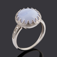 Кольцо агат голубой Намибия (серебро 925 пр. родир. бел.) размер 17