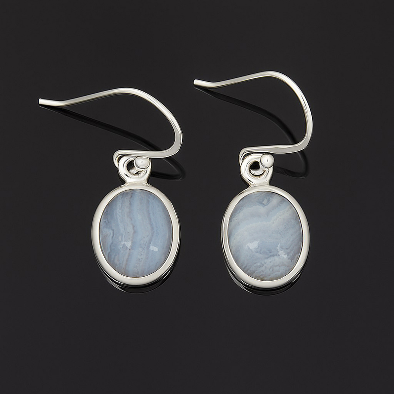 Серьги агат голубой Намибия (серебро 925 пр. родир. бел.)