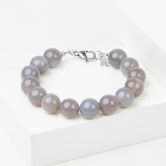 Браслет агат серый Ботсвана (сталь хир.) 12 мм 18 см (+3 см)