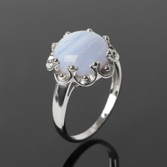 Кольцо агат голубой Намибия (серебро 925 пр. родир. бел.) размер 18