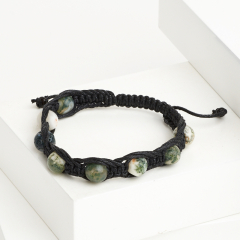 Браслет агат древесный Индия (текстиль) шамбала 8 мм 16 см (регулируемый)