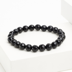 Браслет агат черный Бразилия огранка 8 мм 18 см