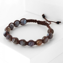 Браслет агат серый Ботсвана (текстиль) шамбала 8 мм 16 см (регулируемый)