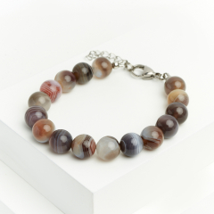 Браслет агат серый Ботсвана (сталь хир.) 10 мм 18 см (+3 см)