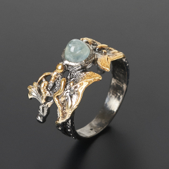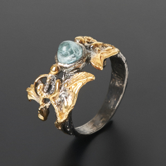 Кольцо аквамарин Бразилия (серебро 925 пр. позолота, родир. черн.) размер 18