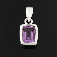Кулон аметист Бразилия прямоугольник огранка (серебро 925 пр. родир. бел.)