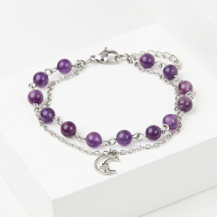 Браслет аметист Бразилия (сталь хир.) 8 мм 17 см (+3 см)