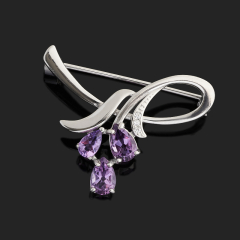 Брошь аметист Бразилия (серебро 925 пр. родир. бел.) огранка