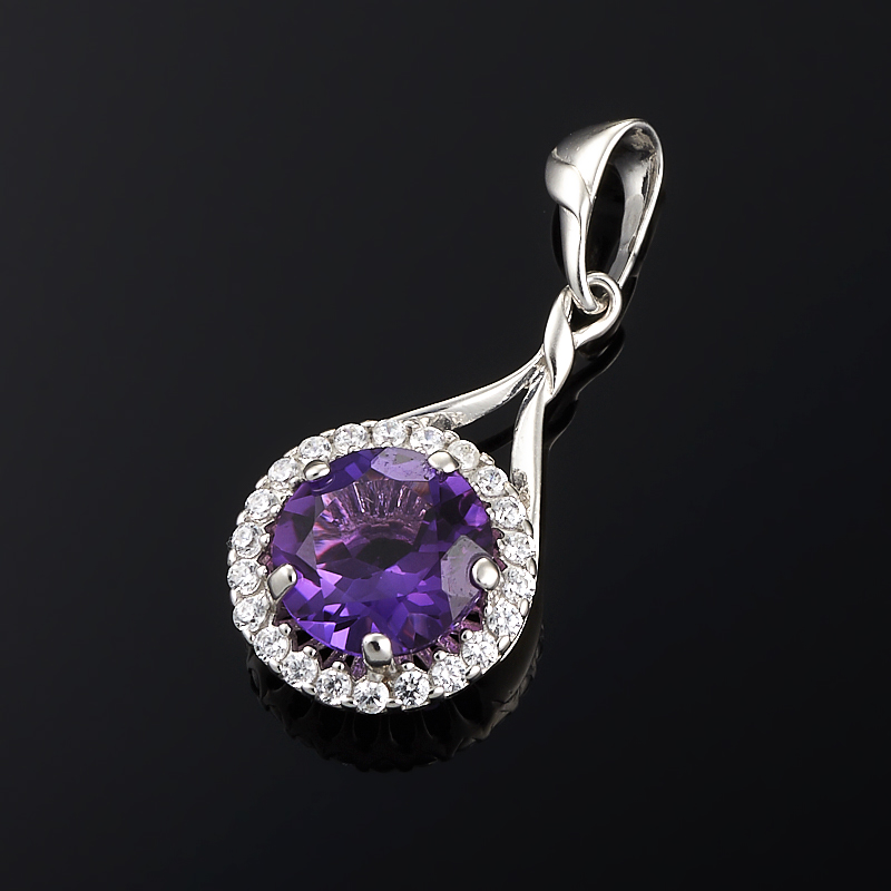 Кулон аметист Бразилия (серебро 925 пр. родир. бел.) огранка
