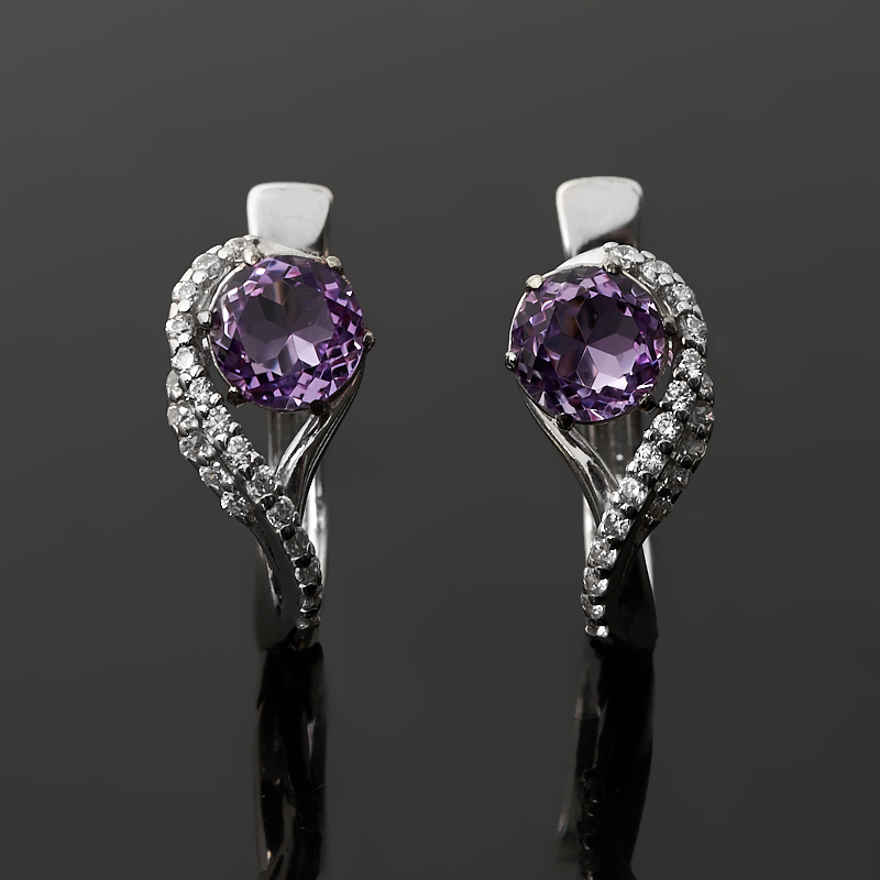 Серьги аметист Бразилия (серебро 925 пр. родир. бел.) огранка