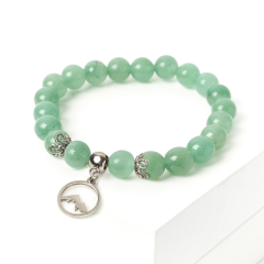 Браслет авантюрин зеленый Индия (сталь хир.) 8 мм 16 см