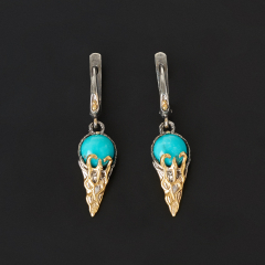Серьги бирюза Казахстан (серебро 925 пр. позолота, родир. черн.)