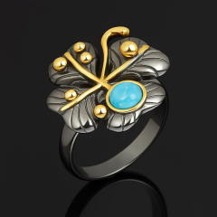 Кольцо бирюза Тибет (серебро 925 пр. позолота, родир. черн.) размер 19