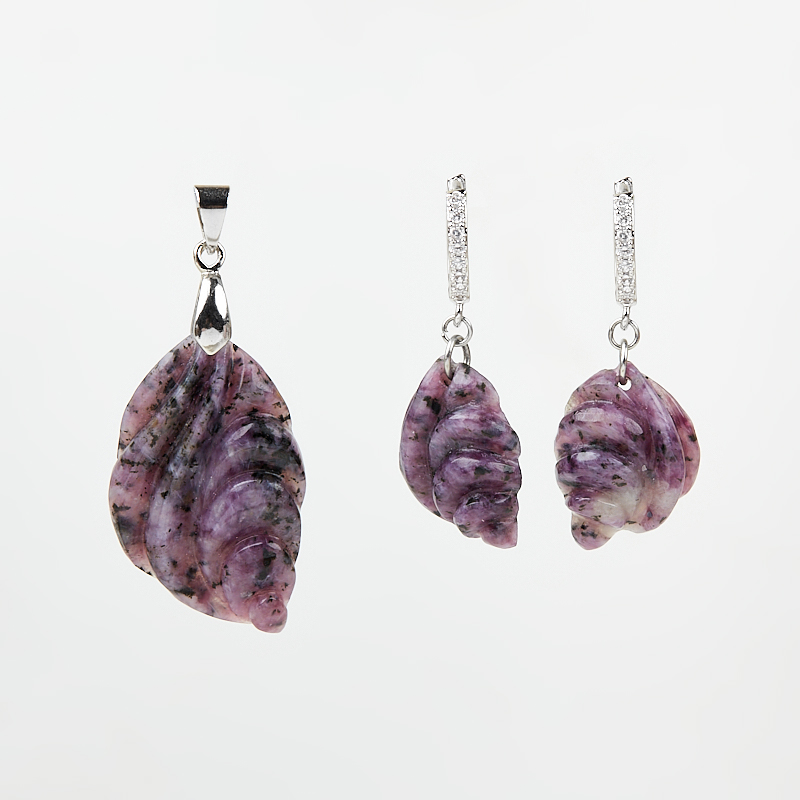 Характеристики: Общая длина: серьги - 39 мм; кулон - 49 мм.