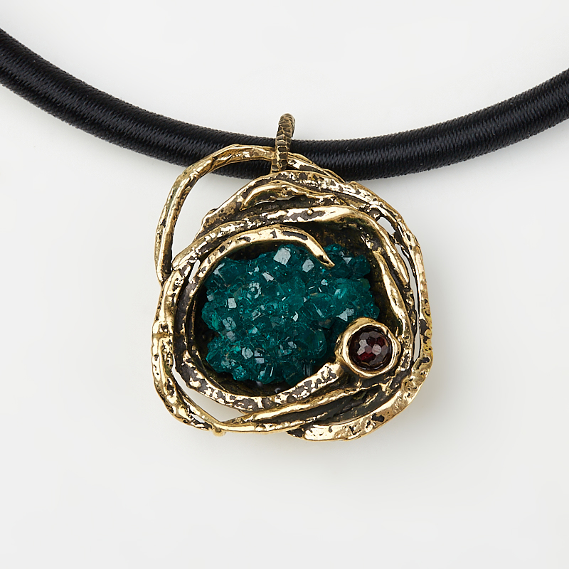 Кулон диоптаз Конго (бронза, биж. сплав позолота, текстиль) 4,5 см