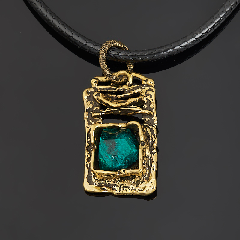 Кулон диоптаз Конго (бронза, биж. сплав позолота, текстиль) прямоугольник 4 см