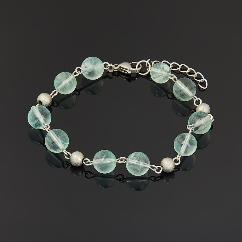 Браслет флюорит зеленый (сталь хир.) 9 мм 17 см (+3 см)