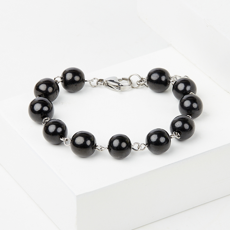 Браслет гагат Грузия (сталь хир.) 10 мм 16 см (+3 см)
