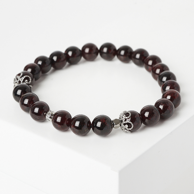Браслет гранат альмандин Индия 8 мм 17 см (сталь хир.)