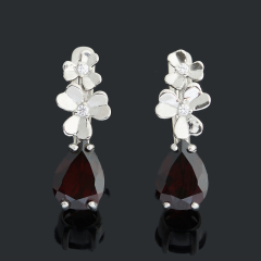 Серьги гранат альмандин Индия (серебро 925 пр. родир. бел.) огранка