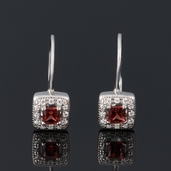 Серьги гранат альмандин Индия (серебро 925 пр. родир. бел.) огранка Наверх