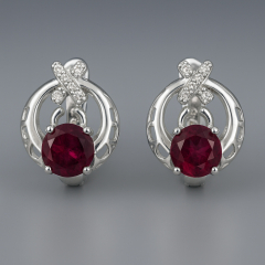 Серьги гранат родолит Индия (серебро 925 пр. родир. бел.) огранка