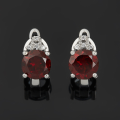 Серьги гранат альмандин Индия (серебро 925 пр. родир. бел.) огранка Наверх