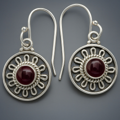 Серьги гранат родолит Индия (серебро 925 пр. оксидир. родир. бел.)
