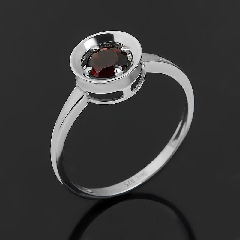 Кольцо гранат альмандин Индия (серебро 925 пр. родир. бел.) огранка размер 18