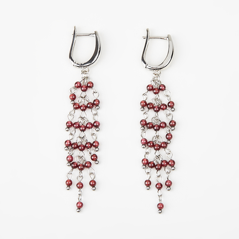 Серьги гранат альмандин Индия (биж. сплав родир. бел., сталь хир.)