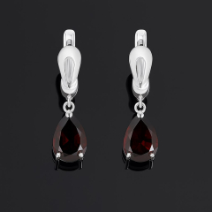 Серьги гранат альмандин Индия (серебро 925 пр. родир. бел.) огранка