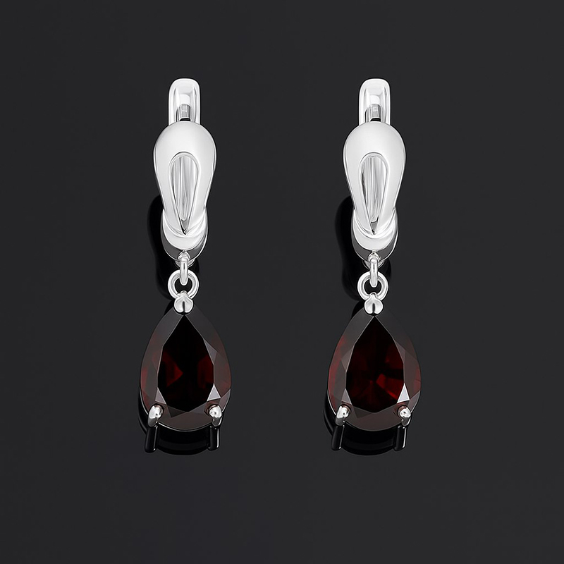 Серьги гранат альмандин Индия (серебро 925 пр. родир. бел.) огранка