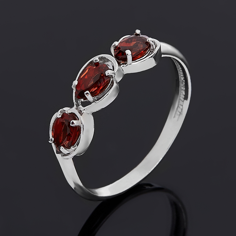 Кольцо гранат альмандин Индия (серебро 925 пр. родир. бел.) огранка размер 17,5