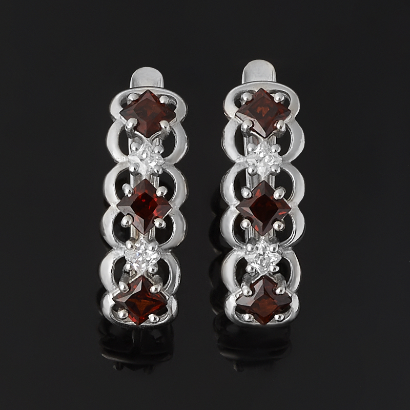 Серьги гранат альмандин Индия (серебро 925 пр. родир. бел.) огранка