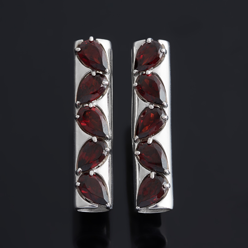 Серьги гранат альмандин Индия (серебро 925 пр. родир. бел.) огранка
