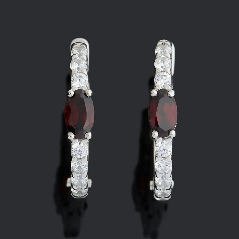 Серьги гранат альмандин Индия (серебро 925 пр. родир. бел.) огранка
