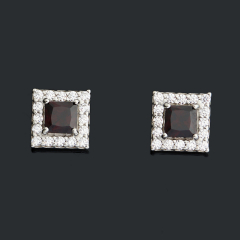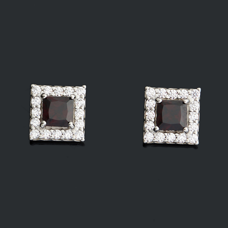 Серьги гранат альмандин Индия (серебро 925 пр. родир. бел.) пуссеты огранка