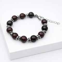 Браслет гранат альмандин Индия 10 мм 18 см (+3 см) (сталь хир.)