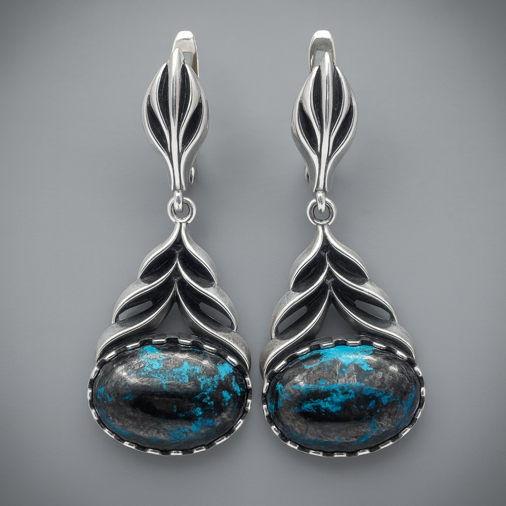 Серьги хризоколла Конго (серебро 925 пр. оксидир.)