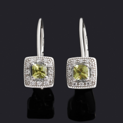 Серьги хризолит США (серебро 925 пр. родир. бел.) огранка
