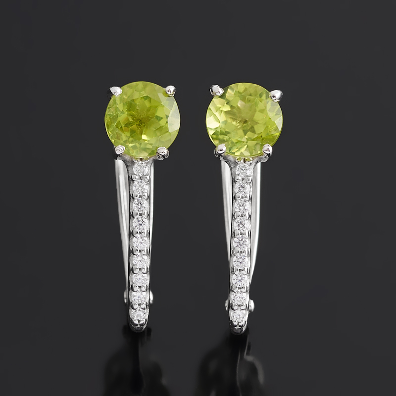 Серьги хризолит США (серебро 925 пр. родир. бел.) огранка