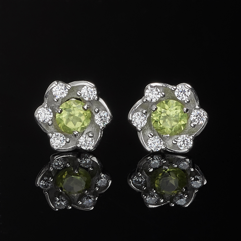 Серьги хризолит США (серебро 925 пр. родир. бел.) пуссеты огранка