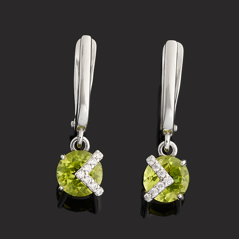 Серьги хризолит США (серебро 925 пр. родир. бел.) огранка