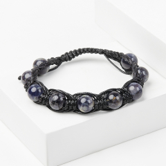 Браслет иолит (кордиерит) Индия (текстиль) шамбала 10 мм 16 см (регулируемый)