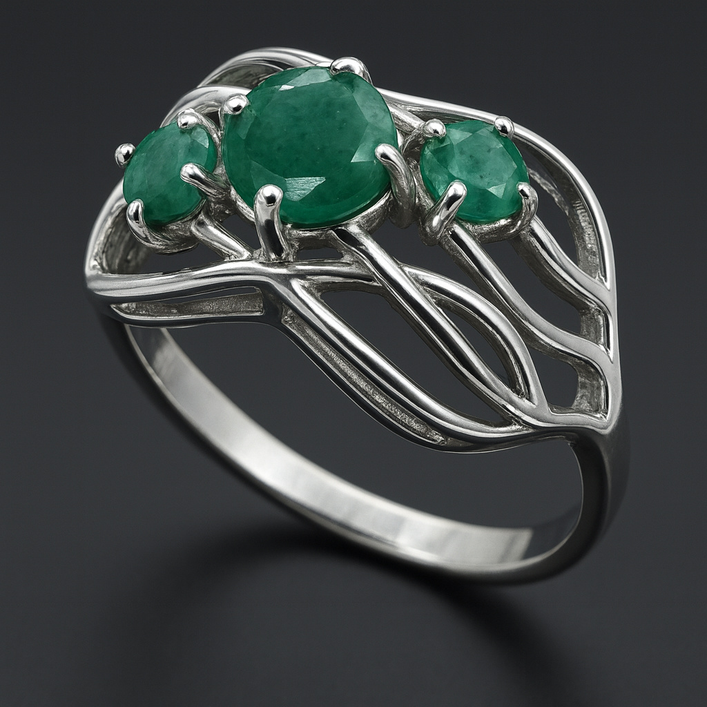 Кольцо изумруд Колумбия (серебро 925 пр. родир. бел.) огранка размер 18