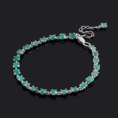 Браслет изумруд Колумбия (серебро 925 пр. родир. бел.) огранка 4 мм 18 см (+4 см)