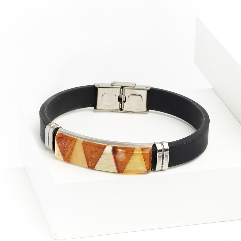Браслет янтарь пресс Россия 19 см (каучук, сталь нерж.)