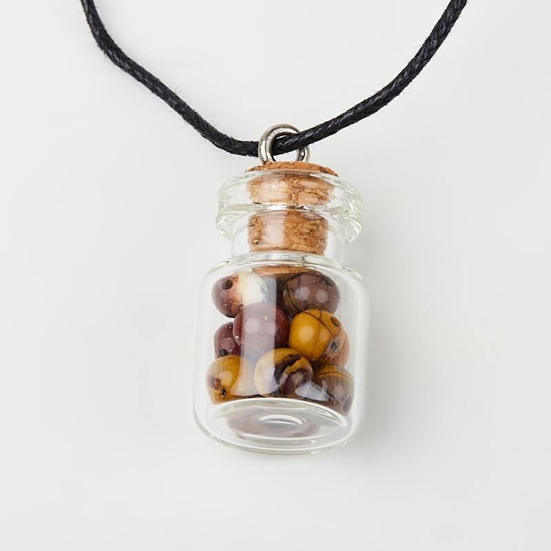 Кулон яшма мукаит Австралия (биж. сплав, стекло, текстиль) бутылочка 3 см