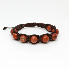 Браслет яшма красная ЮАР (текстиль) шамбала 10 мм 17 см (регулируемый)