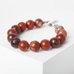 Браслет яшма красная ЮАР (сталь хир.) 12 мм 17 см (+3 см)